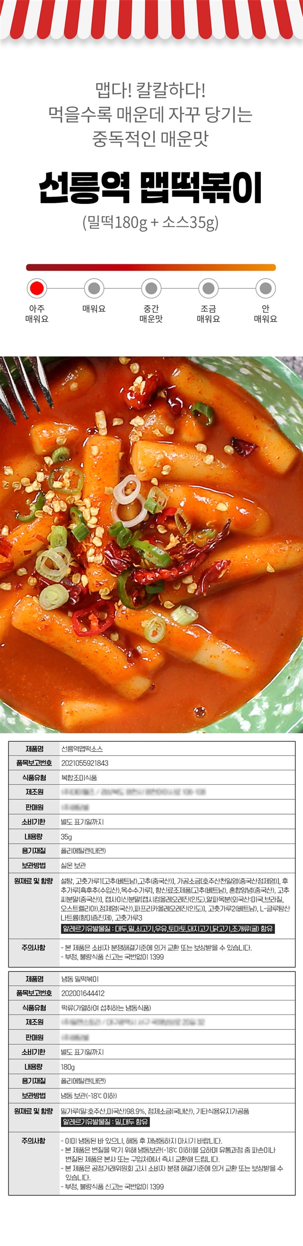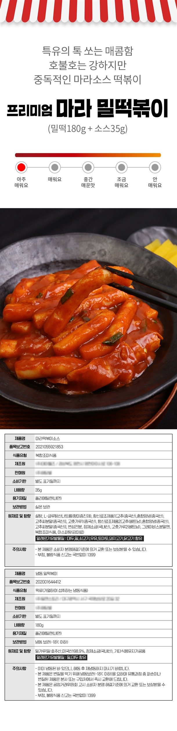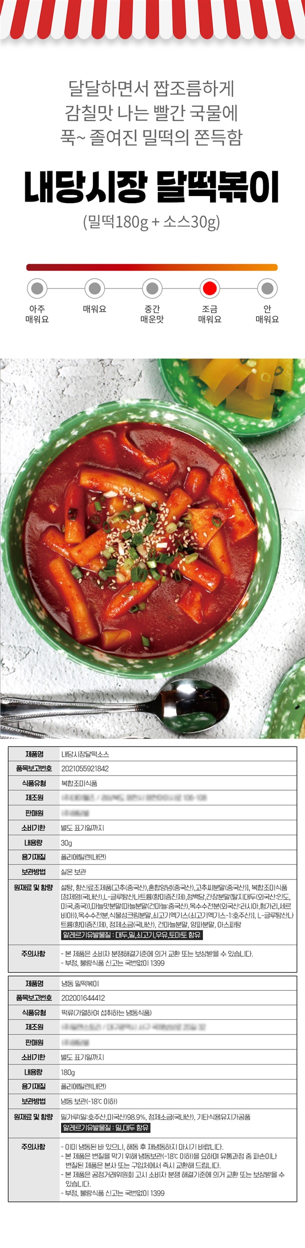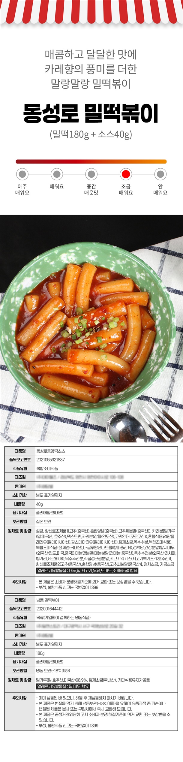 용량: 밀떡 180g + 가루소스 (맛별 35~47g)