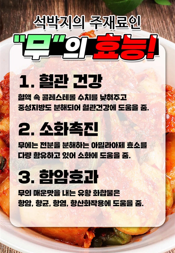 100% 우리농산물로 만든 석박지&갓석박지! 아삭하고 시원한 맛이 일품인 석박지&갓석박지 오늘은 제철무로 맛있게 담아 아삭!하고 시원한 석박지 2종을 가져왔어요!