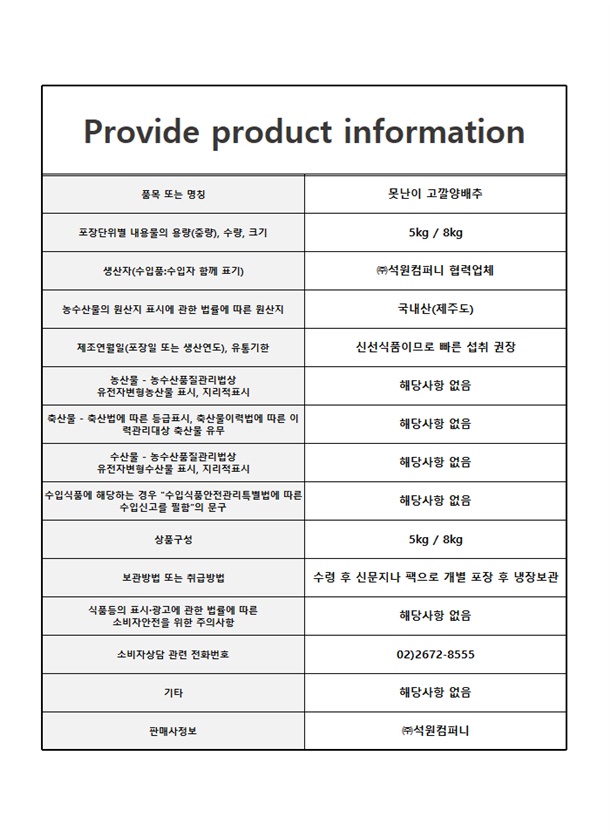 제주 산지직송! 영양2배 고깔양배추!