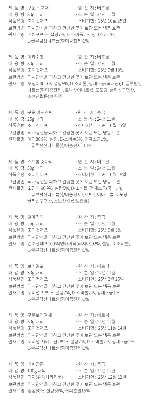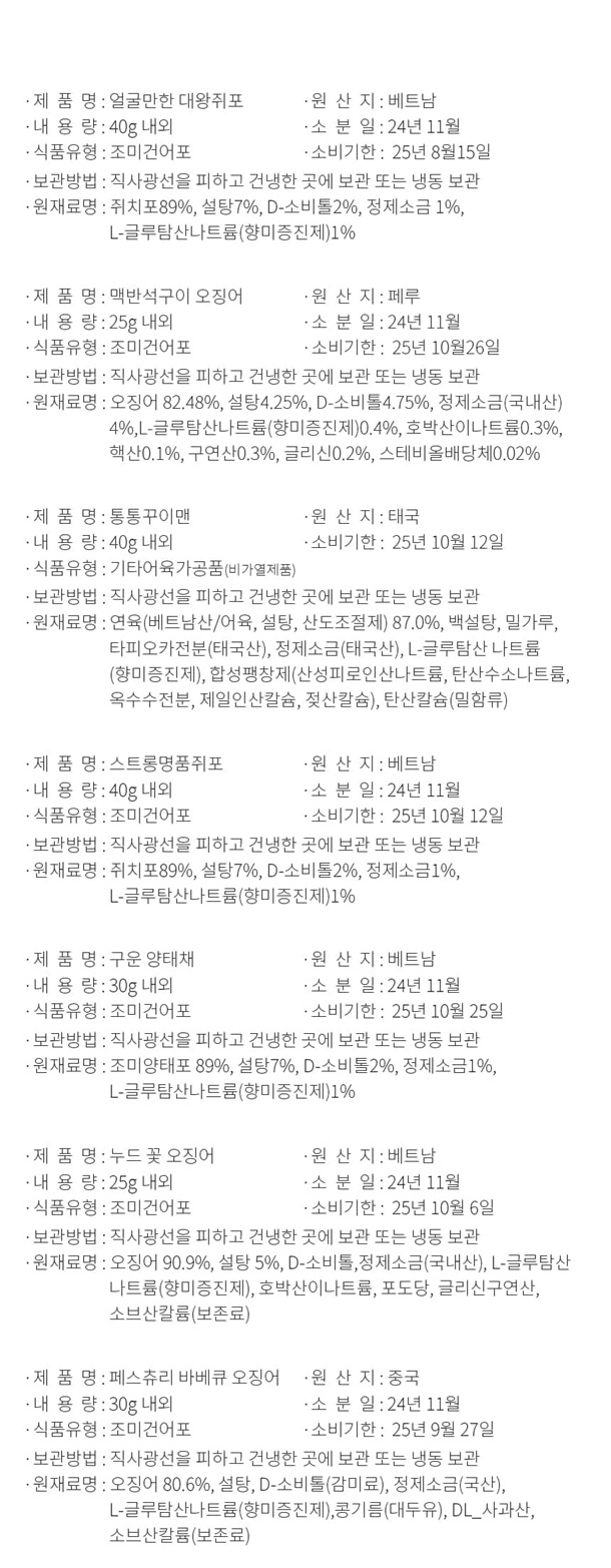맥주 한 잔과 함께 즐기기 좋은 다양한 건어물을 한번에!
