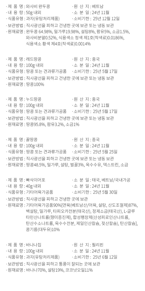 다양한 종류의 땅콩🥜, 바나나칩🍌,