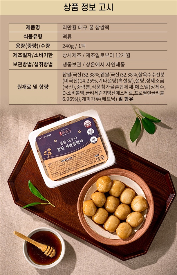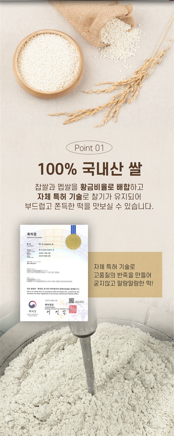 100% 국내산 쌀로 만든 말랑쫀득 꿀 찹쌀떡!!