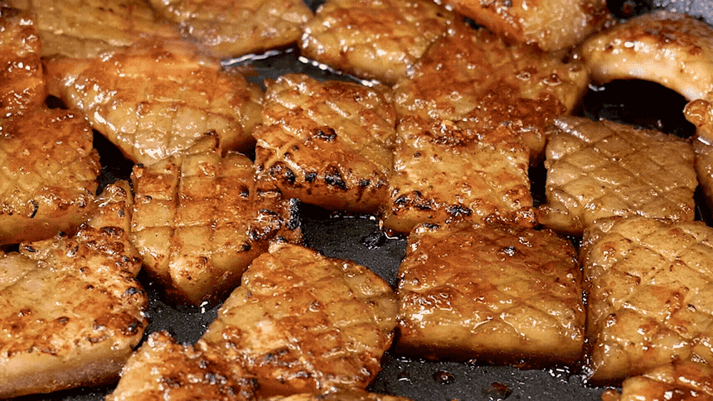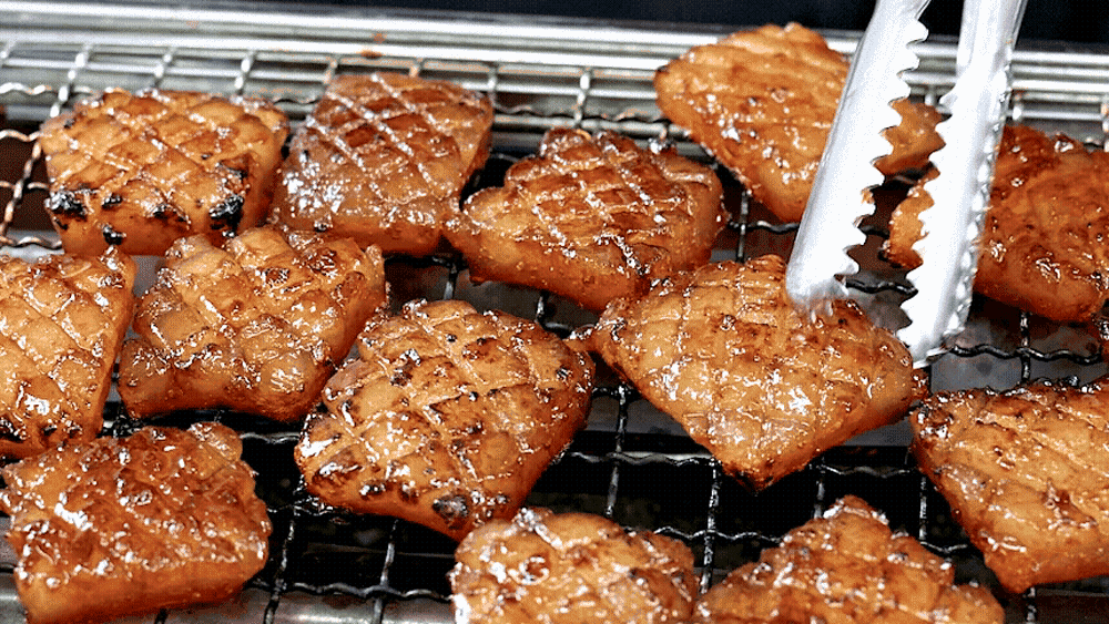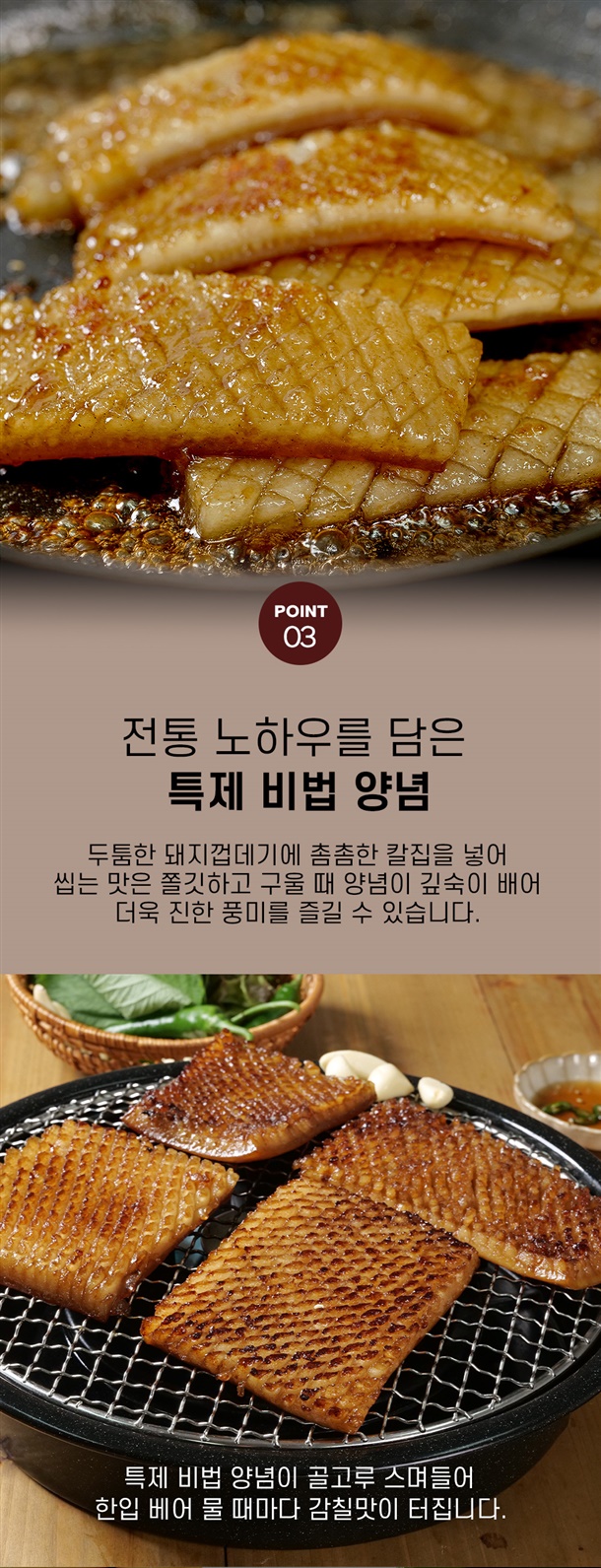 두꺼운 돼지껍데기에 촘촘한 칼집을 넣어
